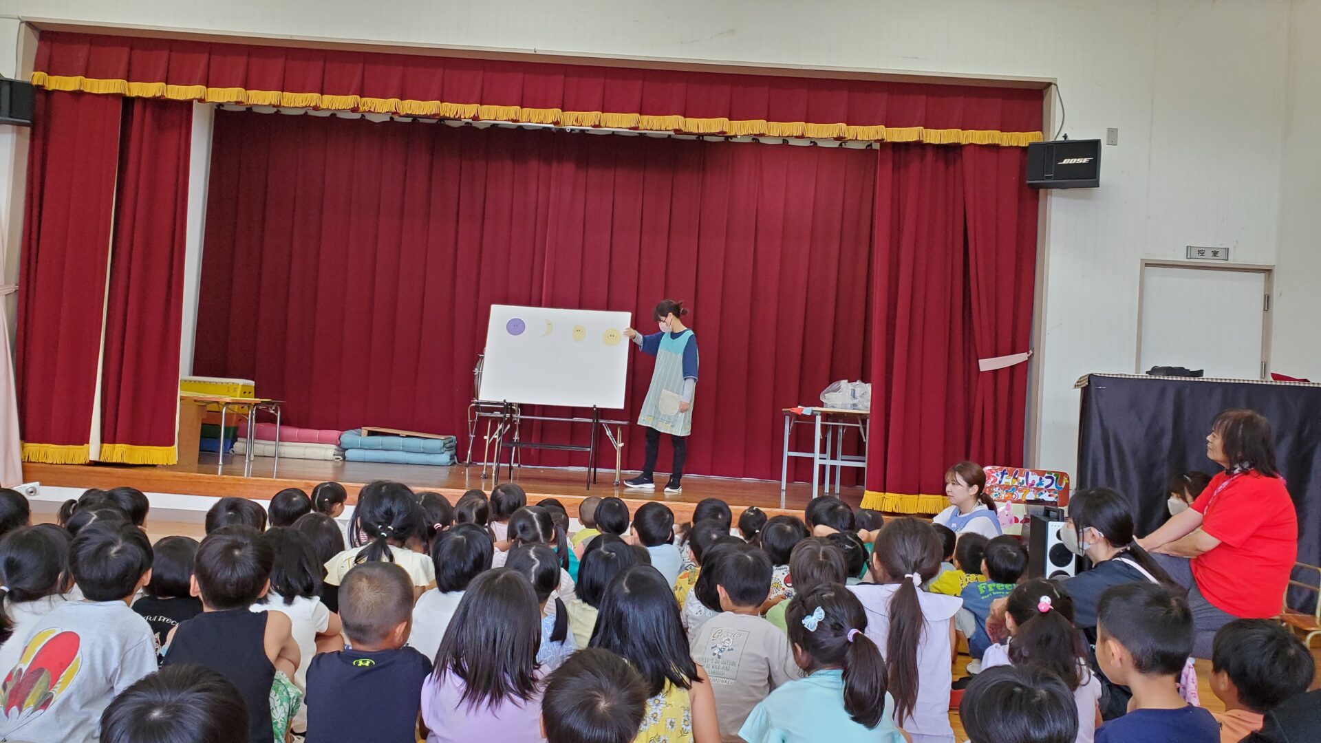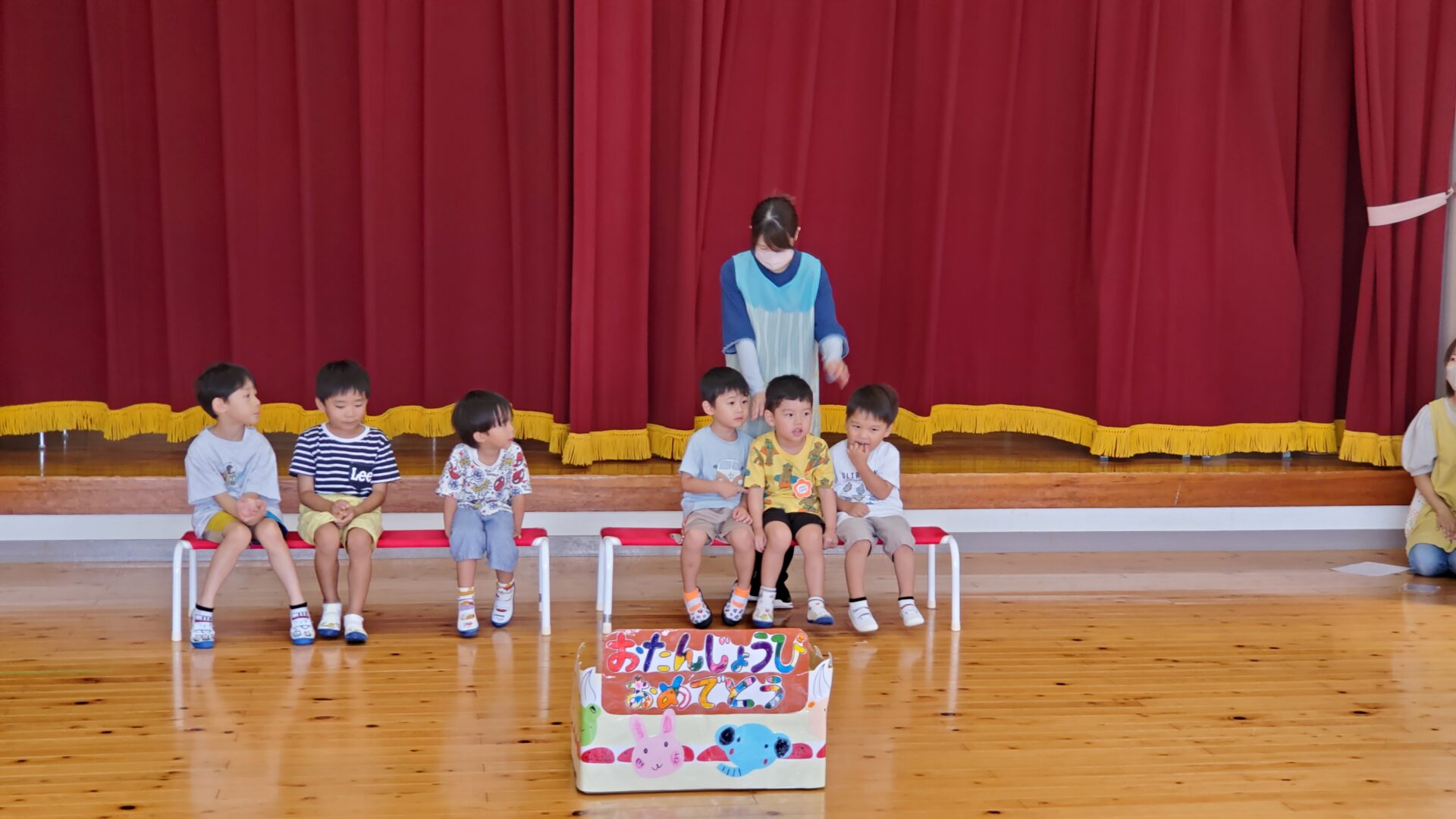 お誕生会の後は、「月」の曲に合わせてペープサートを先生がしてくれました。みんなとても上手に歌えていました。