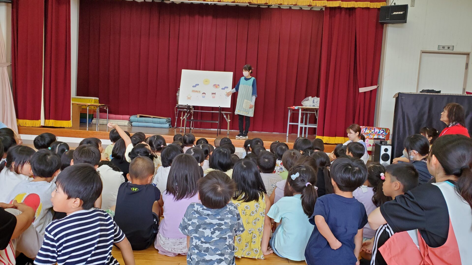 暦の上では、秋ですが、日中はかなり暑い日々の連続です。今日は、9月生まれのお友だちのお誕生会。丁度、職場体験で、近くの中学校のお姉さんが来てくださっていて、とても賑やかなお誕生会になりました。