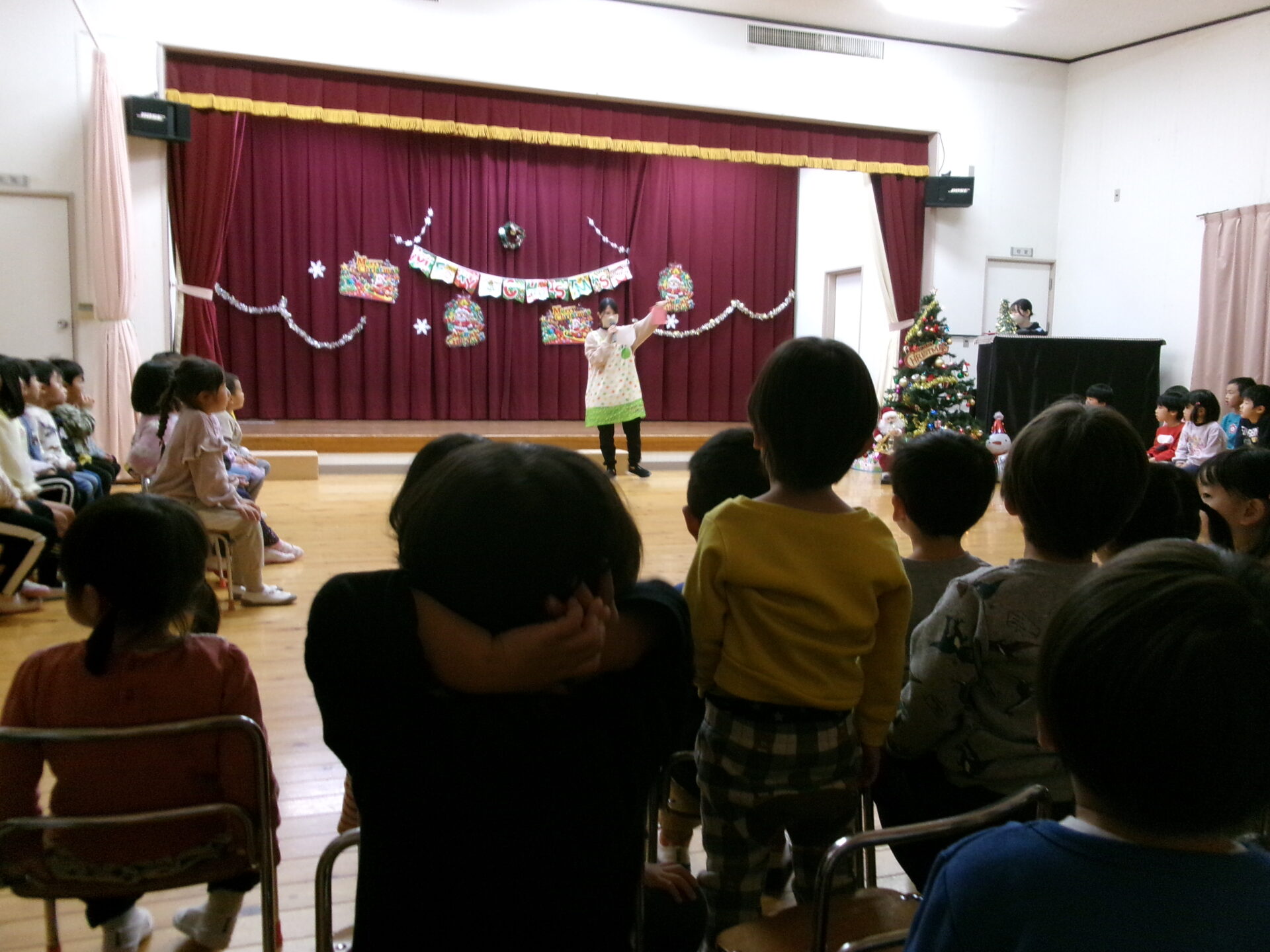 誕生会の為、遊戯室に入るとキラキラの飾りが目に入り、もうクリスマス会一色に飾られた部屋の雰囲気にのまれました。でも、今月生まれのお友達への『お祝いの歌』は、声も大きく手拍子も元気一杯に響いていました。誕生児5人の誕生日をお祝いしました。「おめでとう💛」今日は、サンタさんからもお祝いのプレゼントをもらって嬉しい日です。