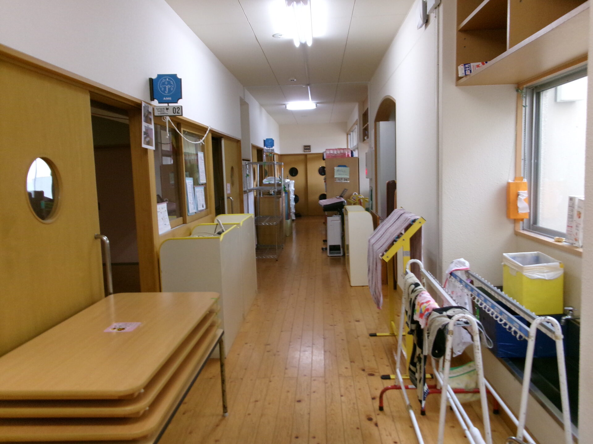 廊下にもあふれ出す保育室の道具たちです。業者さんに綺麗にしてもらいます。