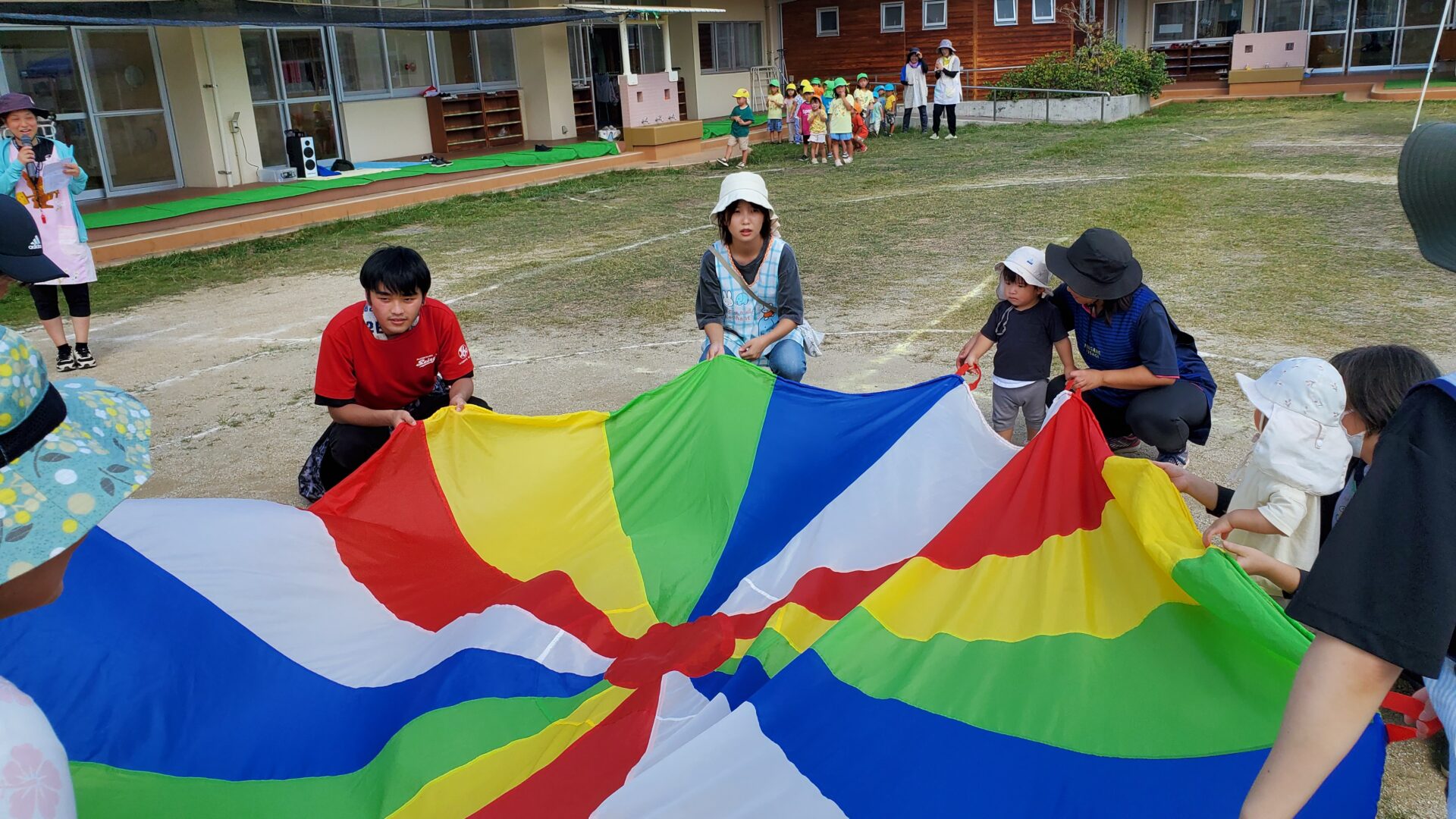 まだまだ暑い日が続いています。本日は、うみチームのとりフェスの練習風景をご紹介します。今年度うみチームはオープニング担当です。かわいい姿を披露して、その後のとりフェスを盛り上げてくれます。当日はお家の方と一緒にパラバルーンをします。お楽しみに。