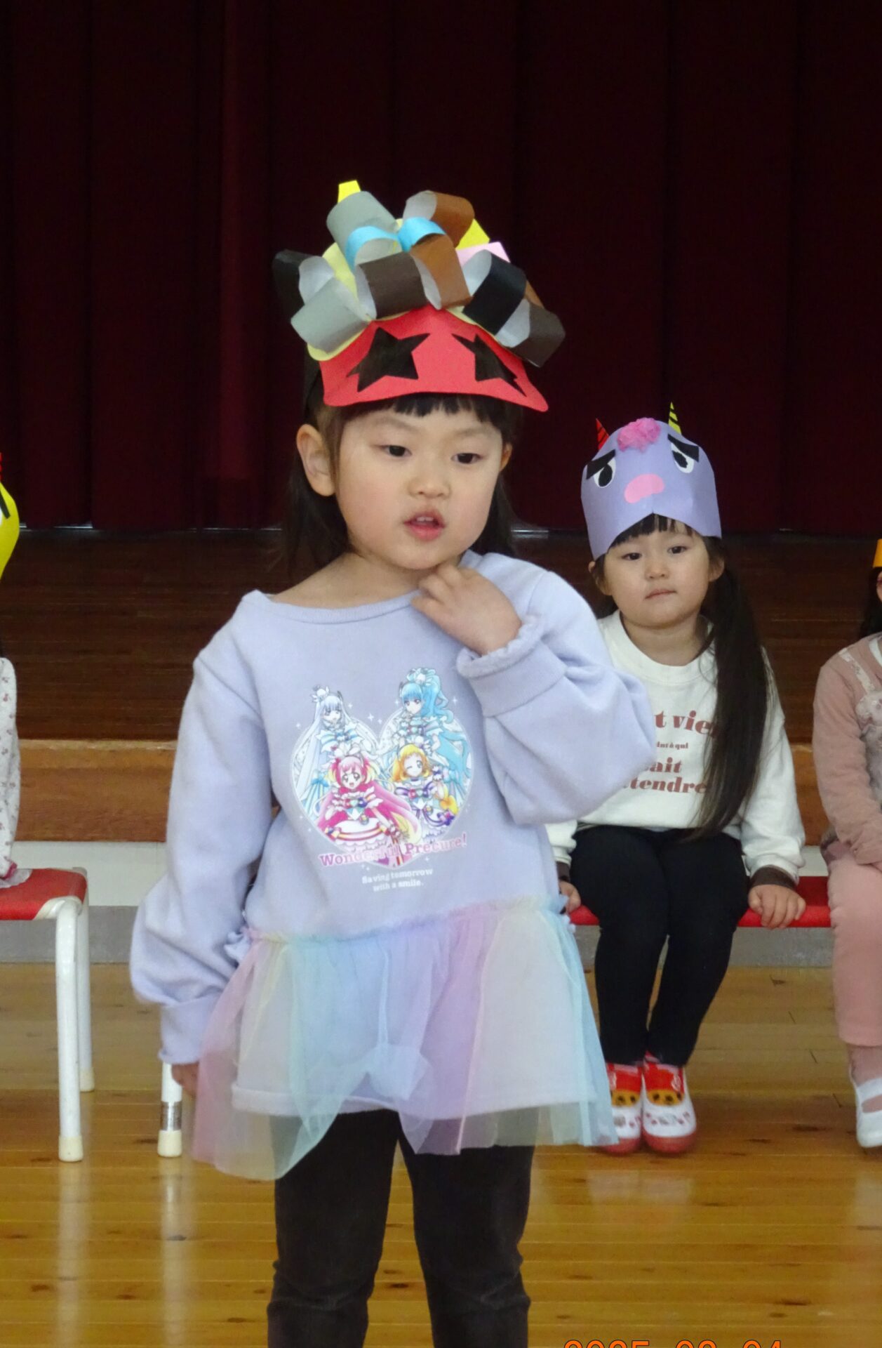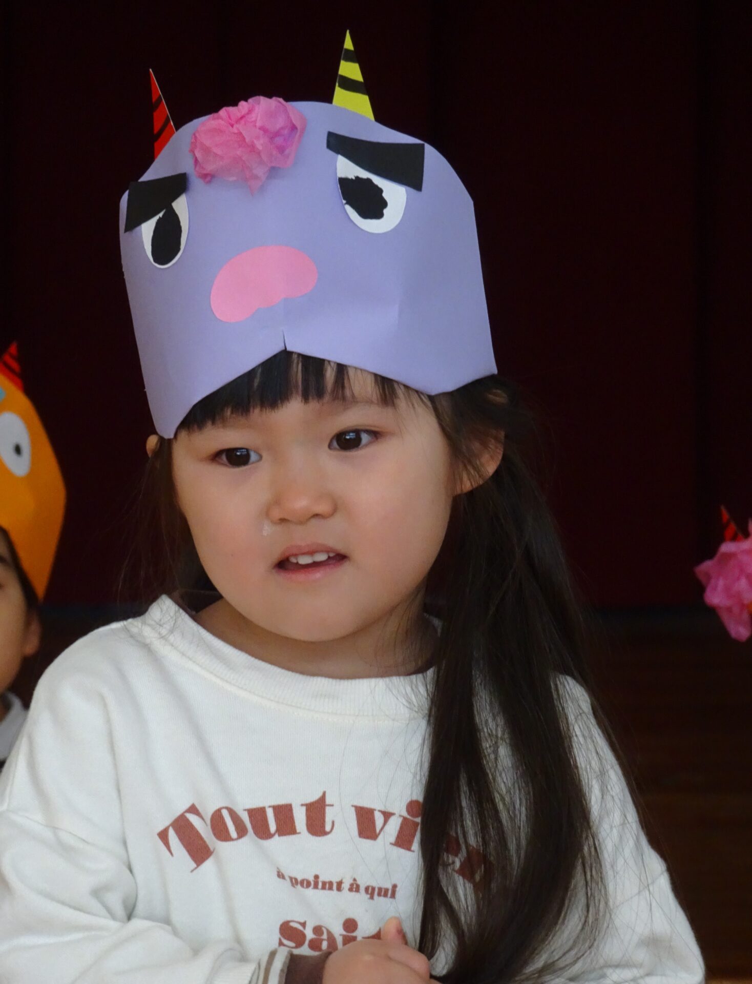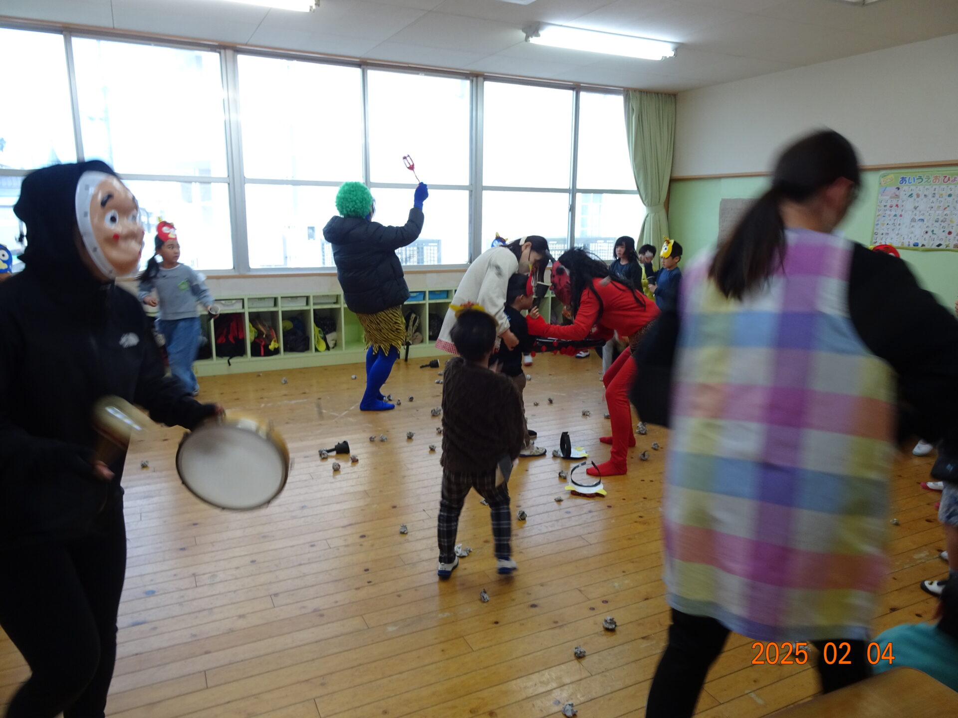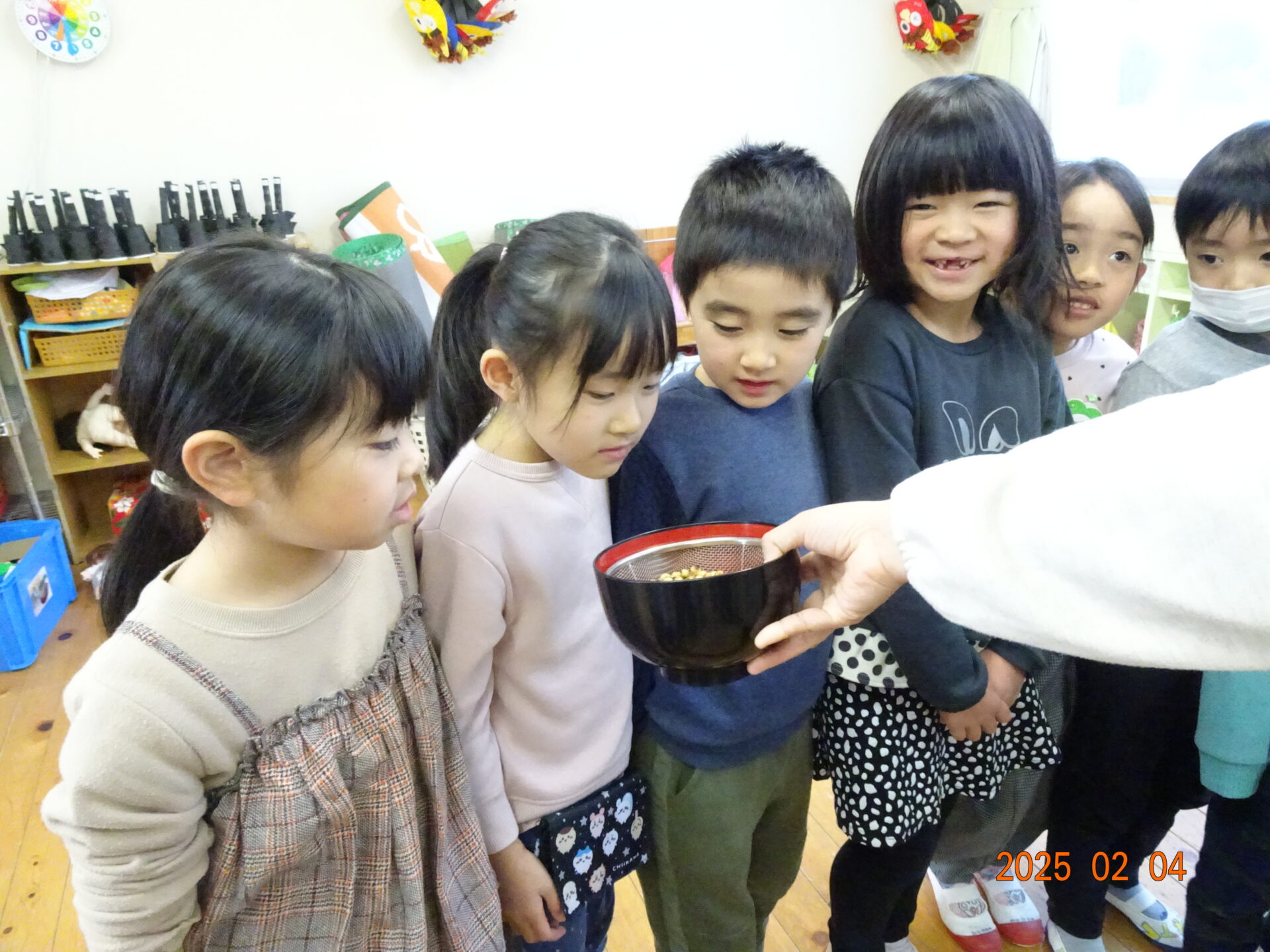 その後は、節分についてのお話を聞きました。節分のいわれや、鬼の嫌いな物、どうして豆まきをするのかのお話を聞きました。