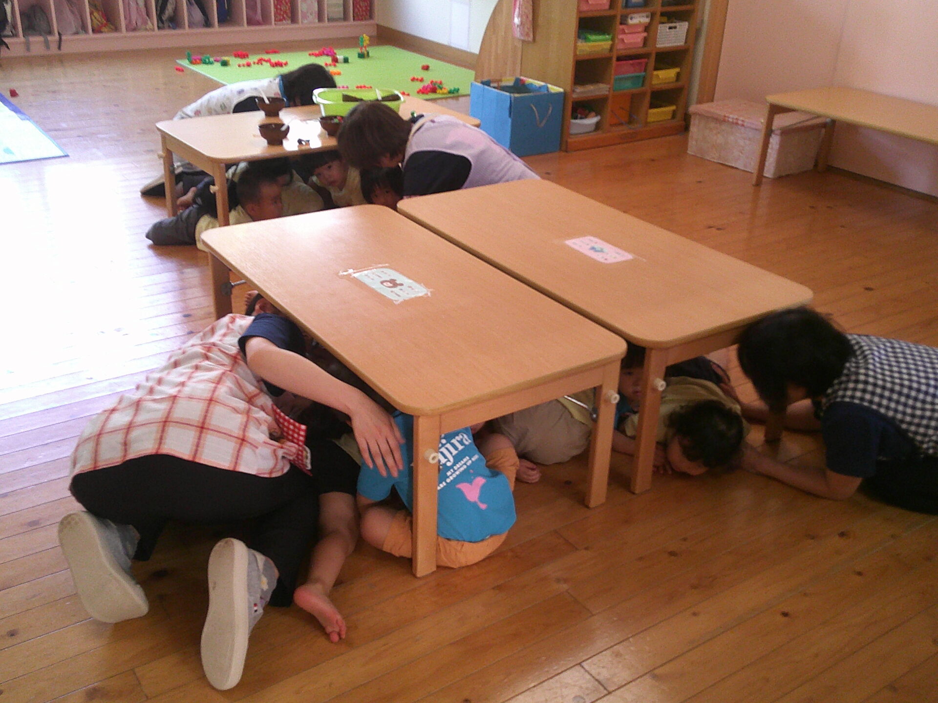 9月1日:防災の日の本日、とりのきくじら保育園でも、地震による避難訓練を実施しました。地震は一度だけでなく、余震も来るという事で、今回は3度の揺れが来ました。