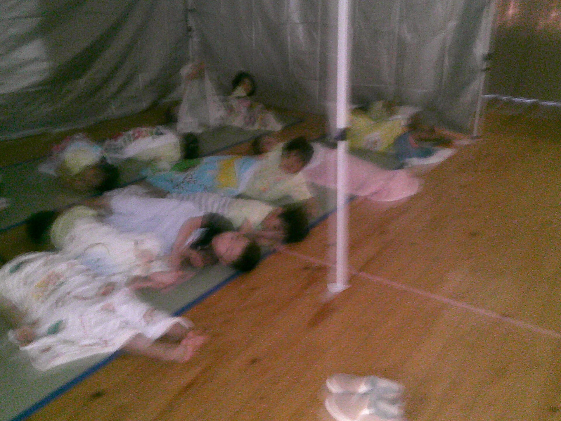 テントの中での食事は、新鮮で、少し、ワクワク感があったようでした。この後、くじらチームさんは、お昼寝もしましたよ。