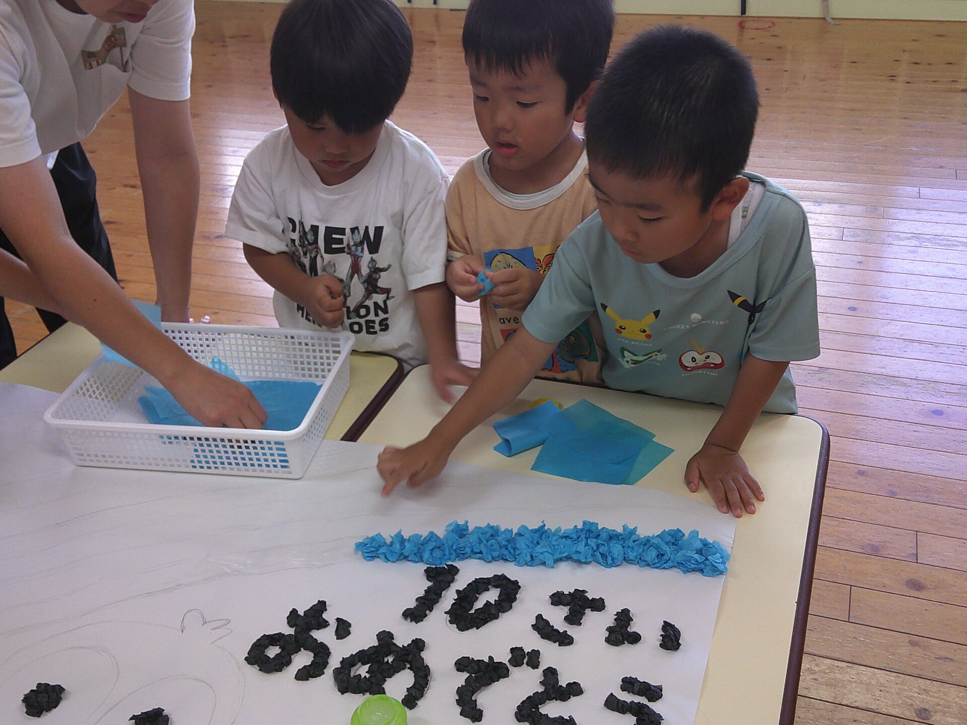 伊予の姉妹園『伊予ぺんぎん小規模保育園』さんが創立10周年を迎えました。とりのきくじら保育園のお友だちもお祝いの品物をみんなで作りました。