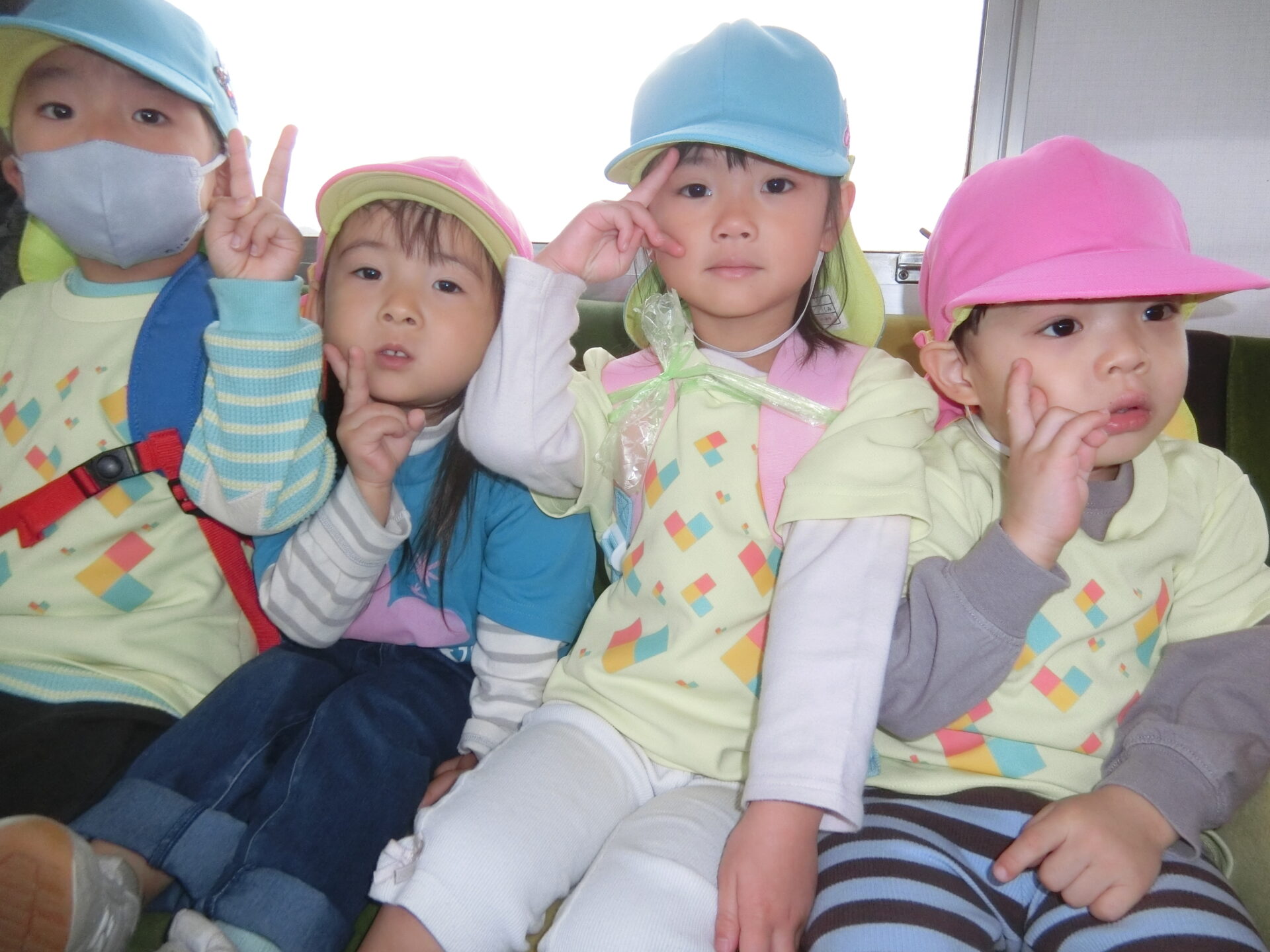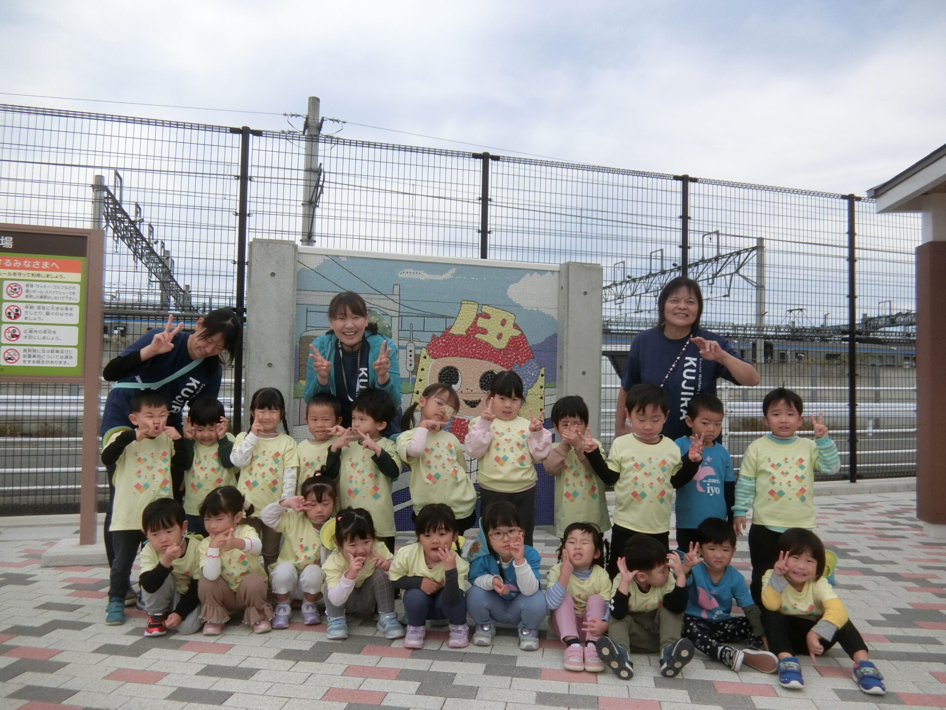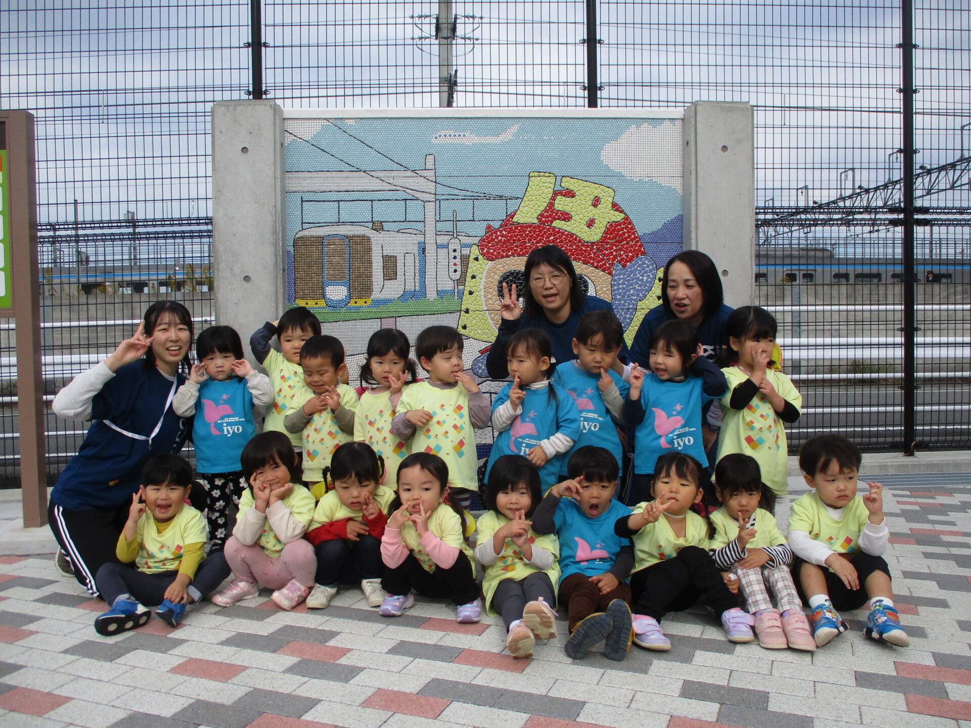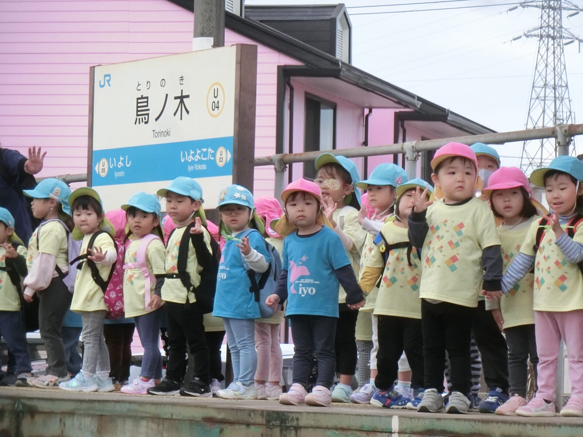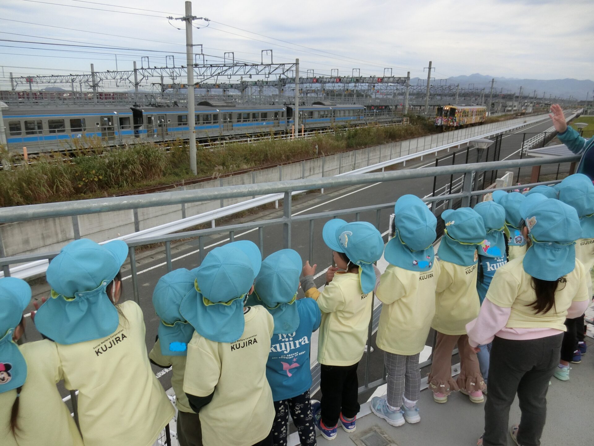 先日、あめチーム(2歳児)とにじチーム(3歳児)が一緒に、電車に乗って、「JR 南伊予駅前ふれあい広場」へ行ってきました🍁