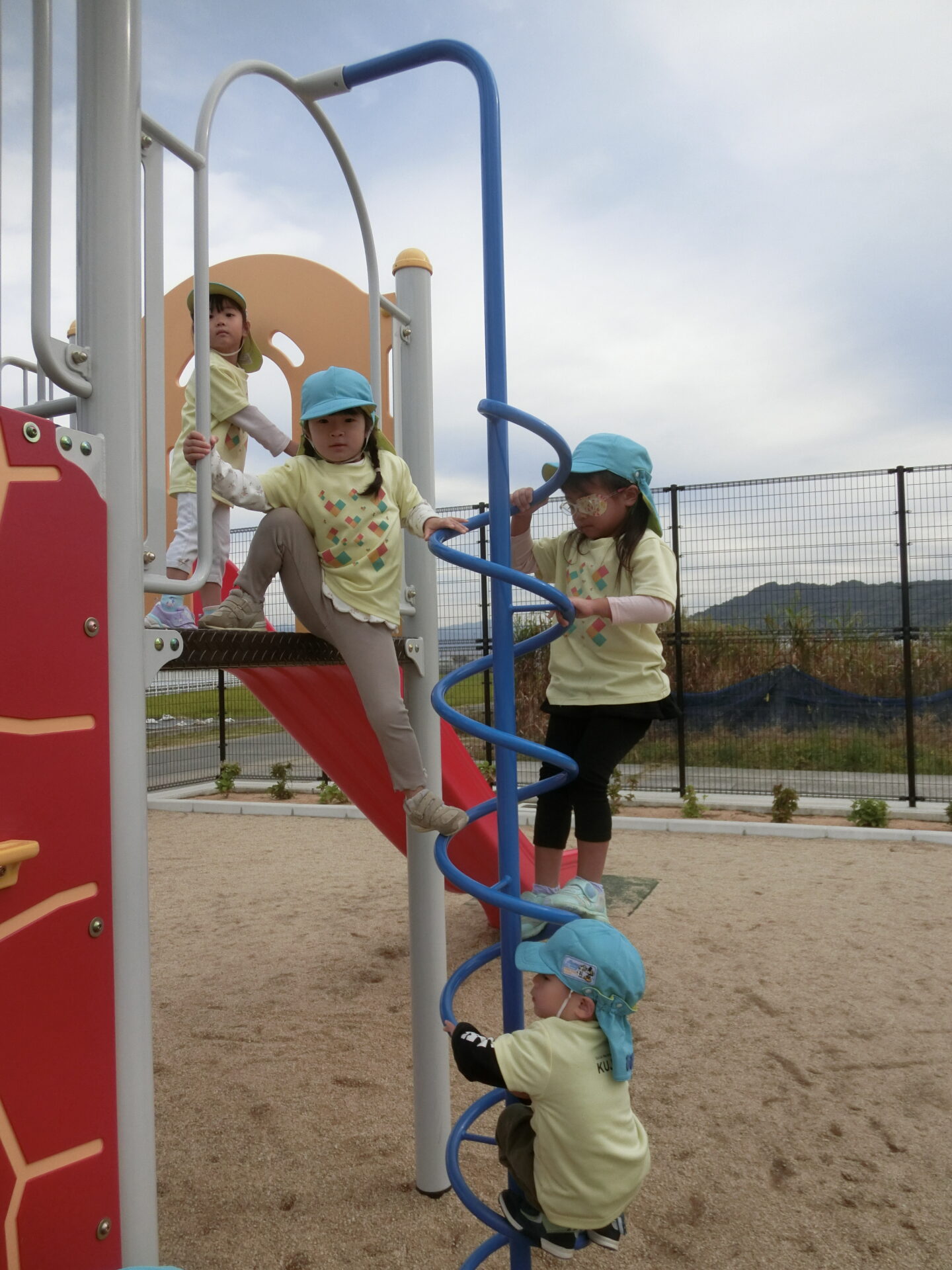 列車を見送った後は、広場の遊具でたくさん遊びました💗少し高いところにも工夫して登り挑戦する姿があり、成長を垣間見ることができました。