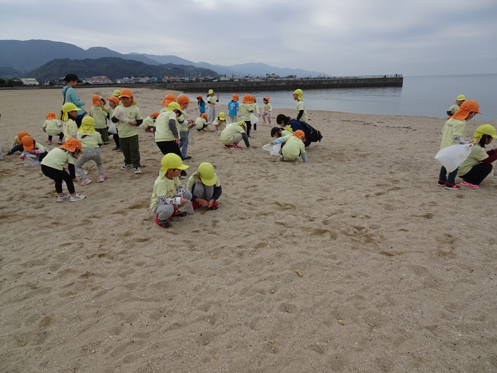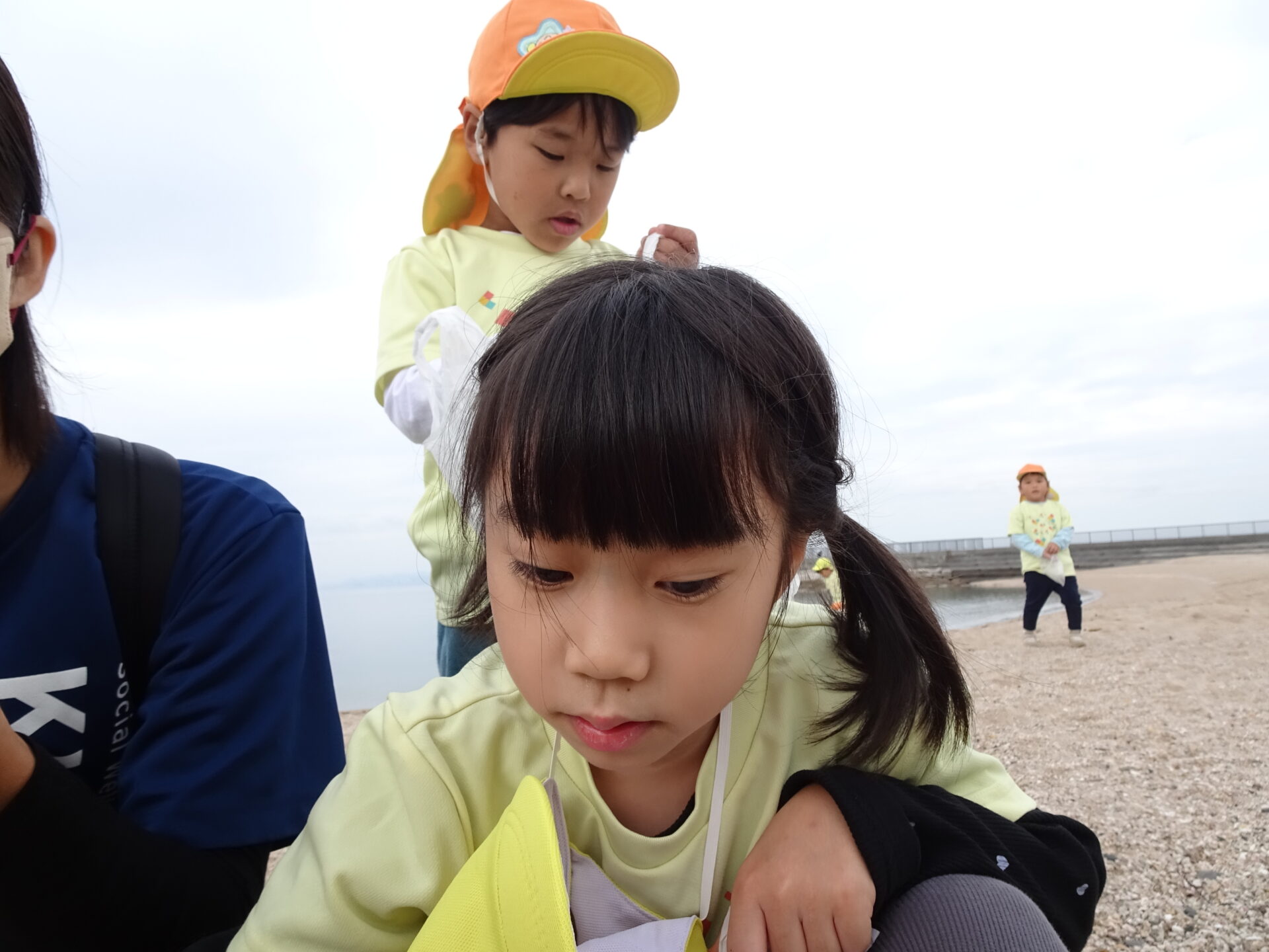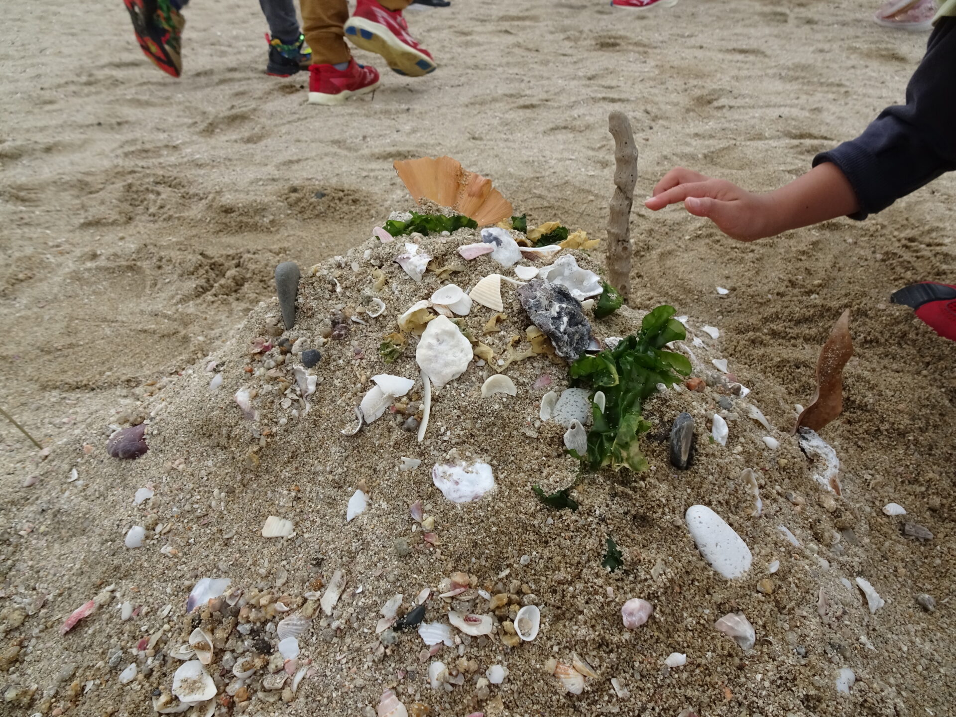 少し、浜辺にも足を延して遊びました。貝殻を拾ったり、砂山を作ったりして、楽しむことが出来ました。