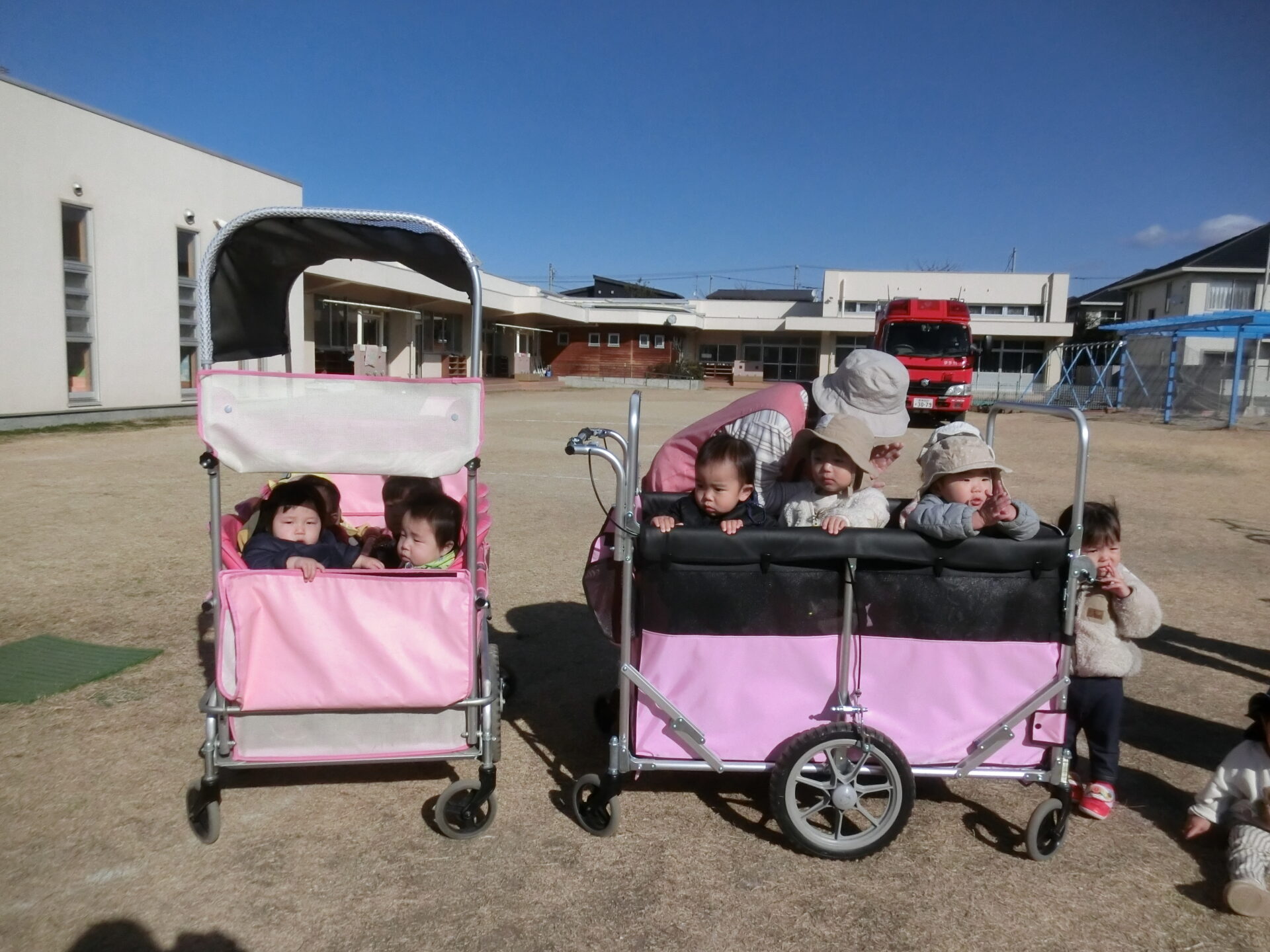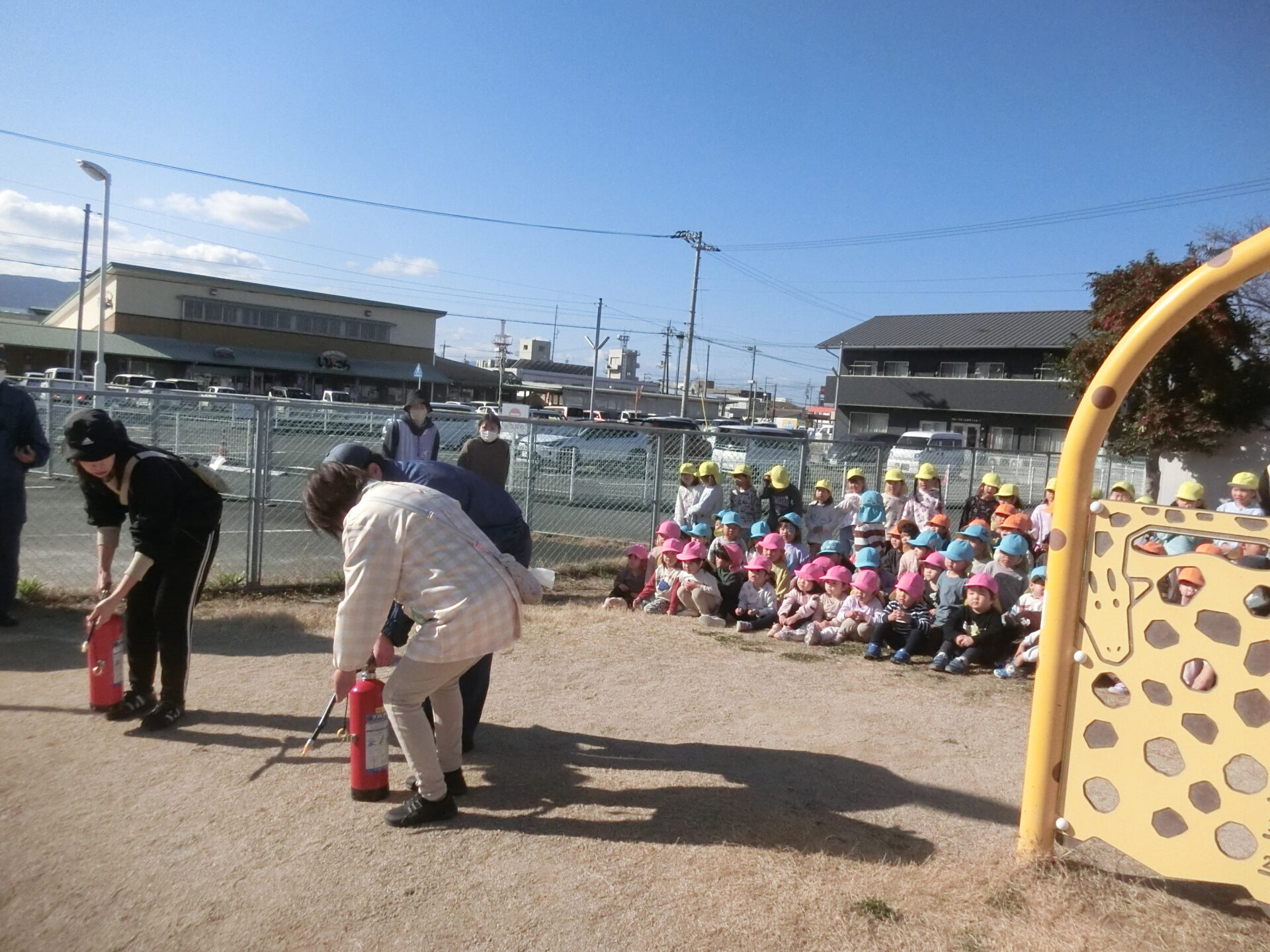 などなど…。いろいろなことを教えて頂き、みんなでお礼を言いました。消防士のお仕事にも興味を持てたかもしれませんね!空気も乾燥している時期なので、私達職員も気を引き締めて、安全な保育に努めようと思います。(^^)子ども達にも、災害の怖さや避難する大切さ、命を守ることを、これからも伝えていきます⭐