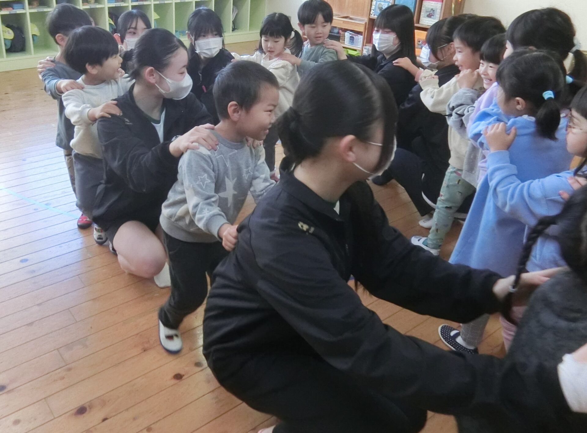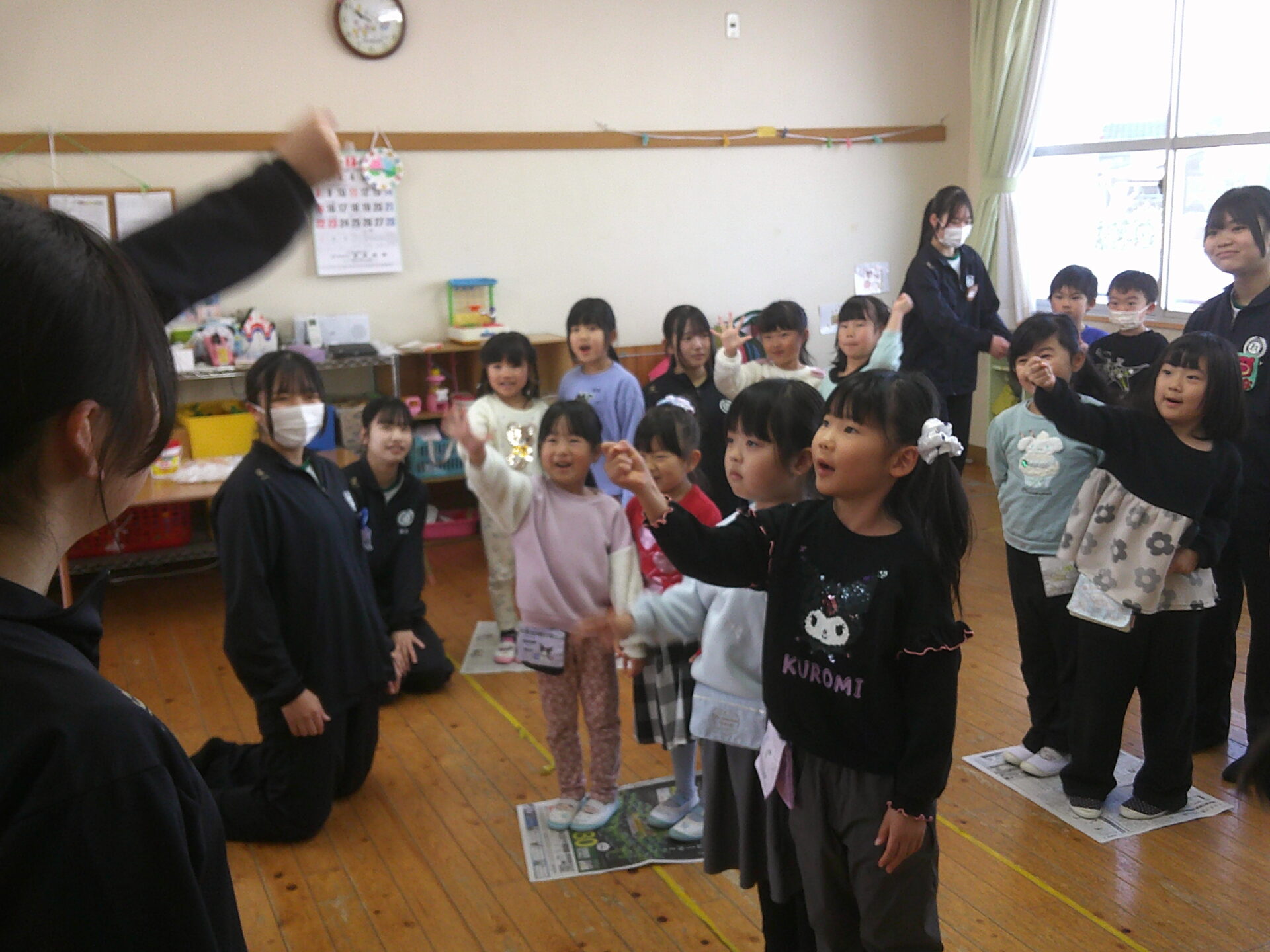 じゃんけん列車では、じゃんけんが、うまくできずにいても、やさしく教えてくれました(^^♪子どもたちは、最後、みんながつながって、1列になるまで、ハイテンションで楽しんでいました!