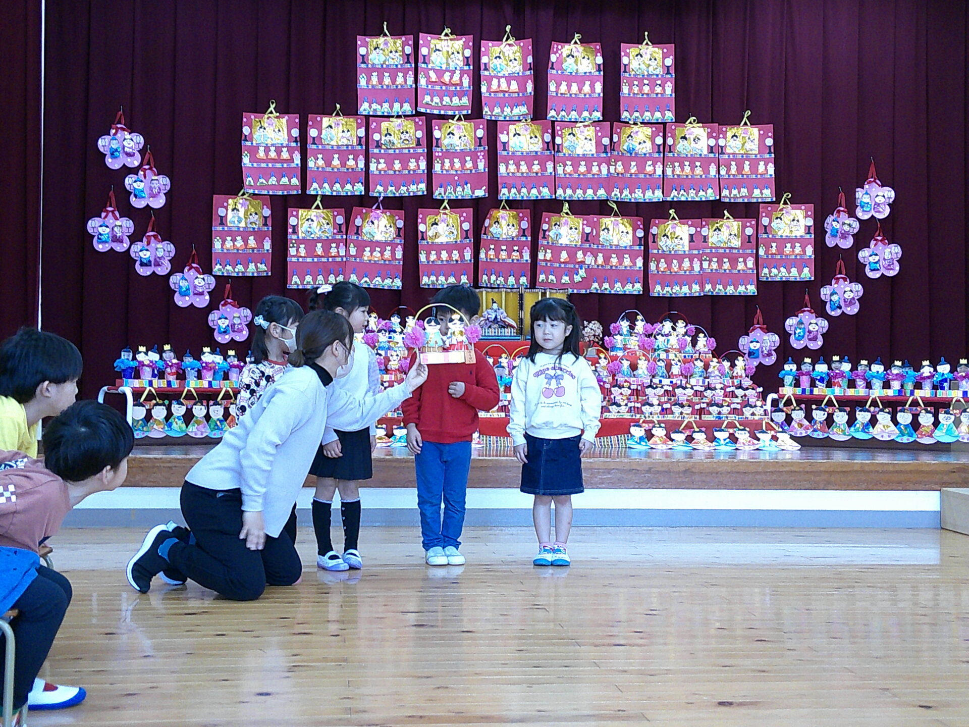 どのチームのお友だちも、一生懸命作りました。みんなのお雛様が集まるととても壮大でした。一年間、健康で、楽しく、笑顔で、美しく過ごせますように。
