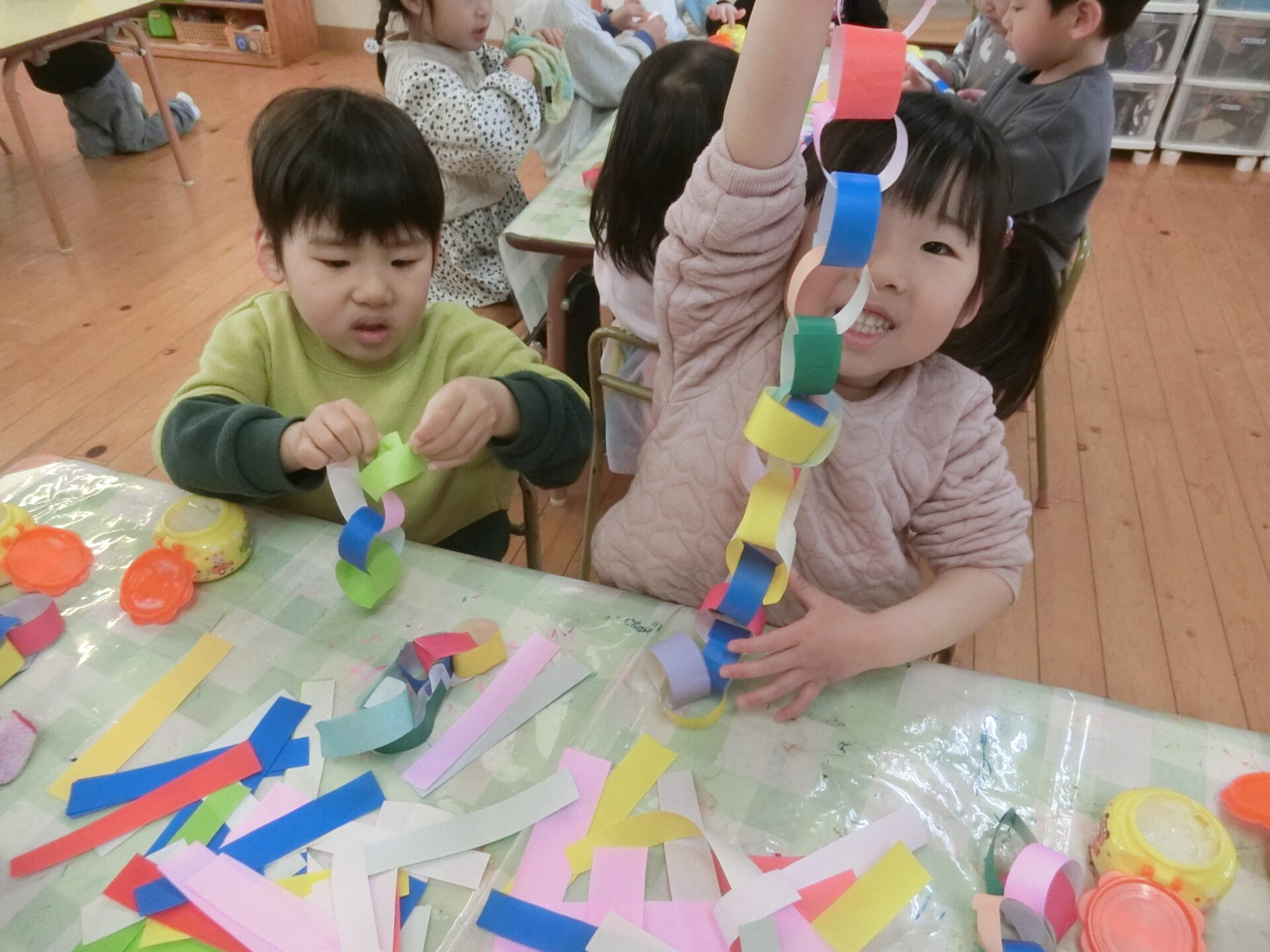 今年度もあと少しとなった3月中旬。4月から、小学校へ旅立つ、くじらチームさん(5歳児)のお別れ会が開かれました。そらチームさん(4歳児)を中心に、2月初めくらいから、にじチームさん(3歳児)や先生たちと一緒に準備をしていきました。もちろん、くじらチームさんには内緒です。